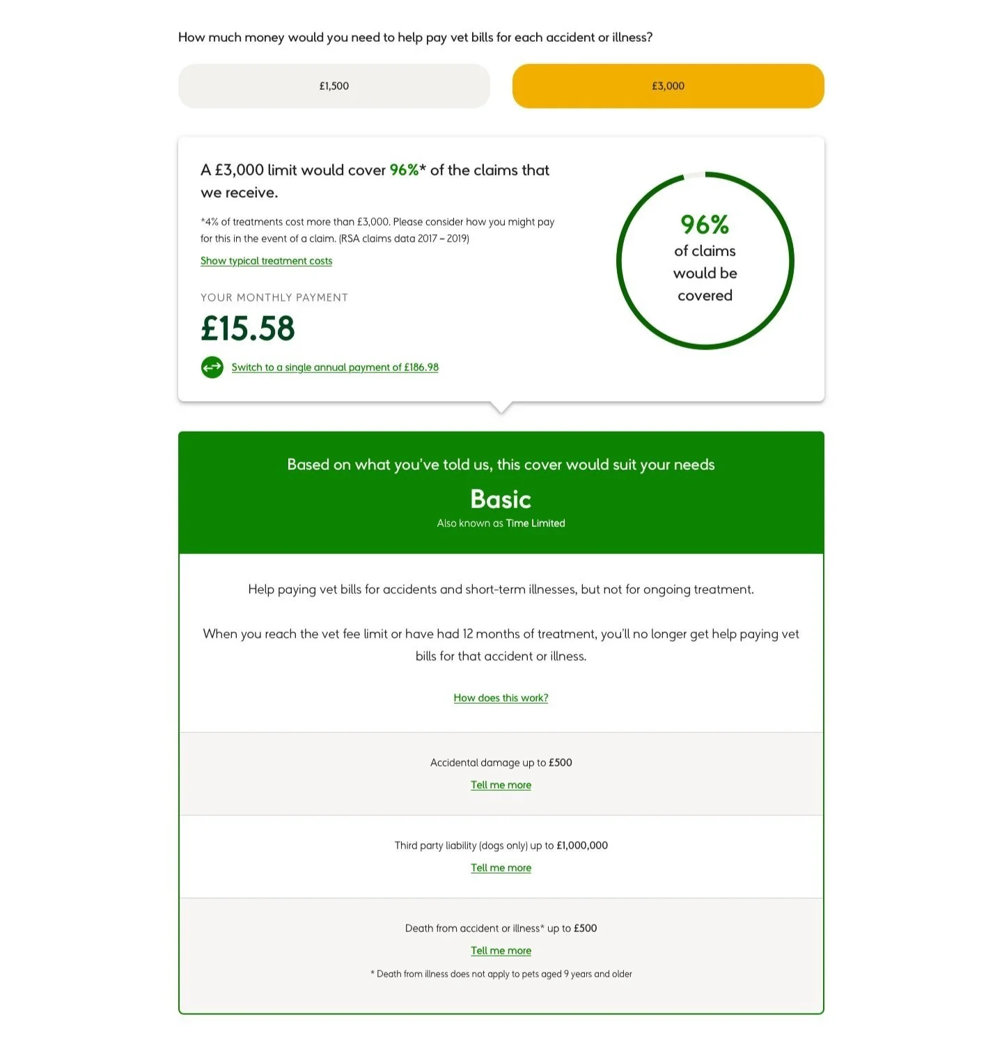 We believe that talking about the policy from the pet’s point of view will positively resonate with users. Causing them to think about the correct cover level, rather than just price